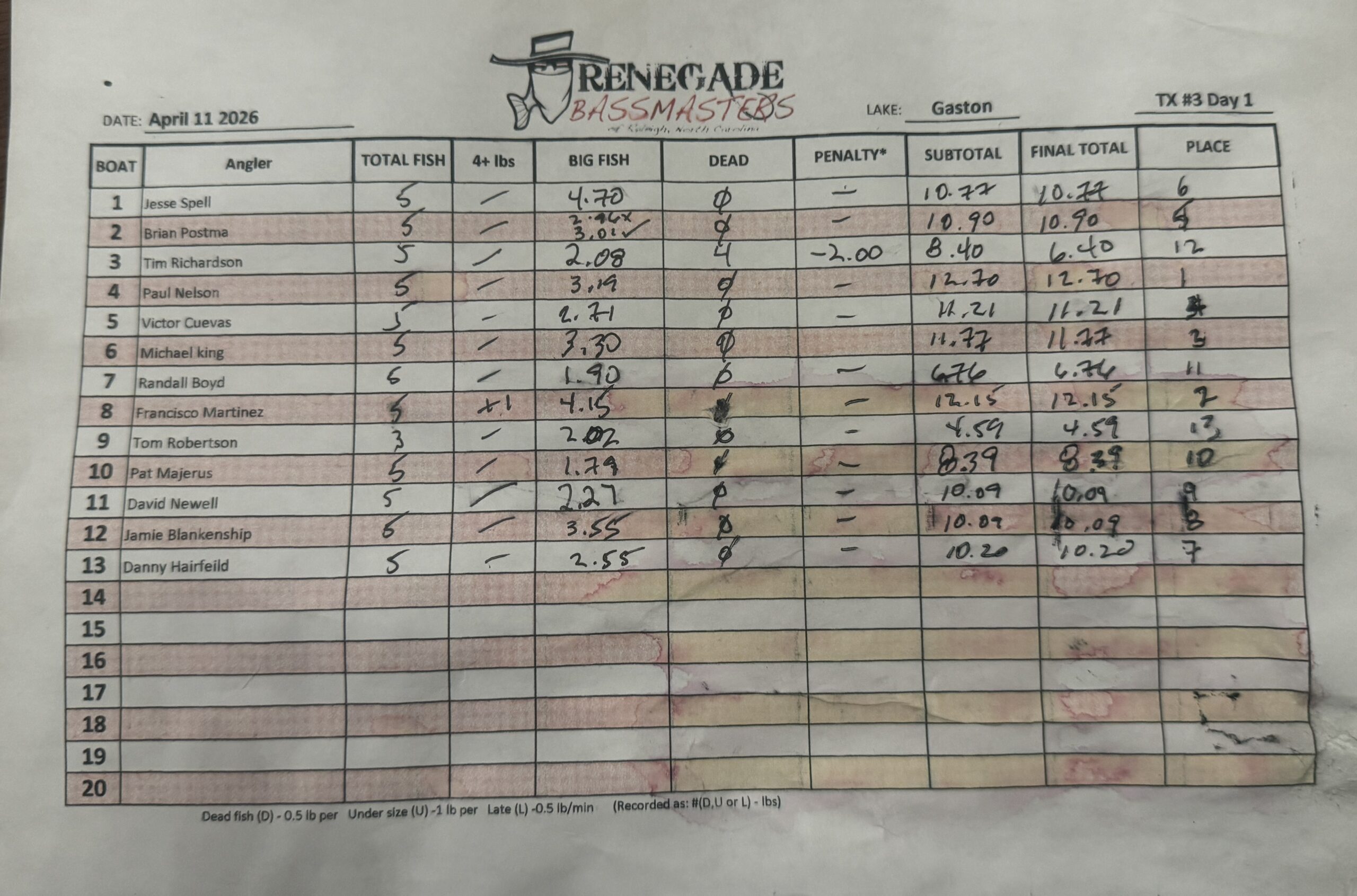 | 11 Apr 2026 | Lake Gaston (During Classic) | Stonehouse | |